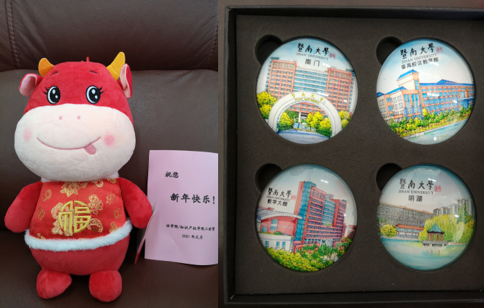 接着,公司举行2020年新进教师入职仪式。新进教师魏楚伊、钟媚分别做了自我介绍,院领导为她们佩戴校徽并合影留念,全体教职工热烈欢迎新同事加盟。最后,公司工会为2020年第四季度生日的24位教师举行集体生日会,送上生日纪念品。同时,也为所有教职工送上牛年吉祥物,表达新年祝福。大家一起吃蛋糕,公司例会在其乐融融的气氛中结束!