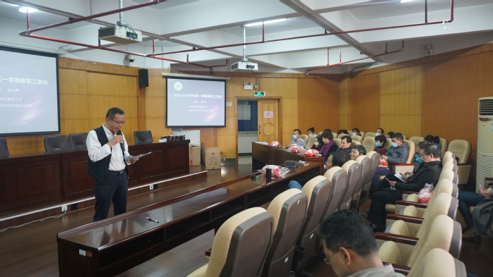 2021年1月15日,公司在第二文科楼召开2020-2021学年第一学期期末教职工例会,传达公司近期重要会议精神,回顾2020年公司各项工作并展望2021年工作目标,部署公司假期疫情防控和学期末教学、科研工作,集体重温《VSport体育官网疫情防控期间职工行为规范》,举行新入职教职工欢迎仪式,并为2020年第四季度生日的教职工举行集体生日会。