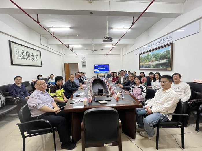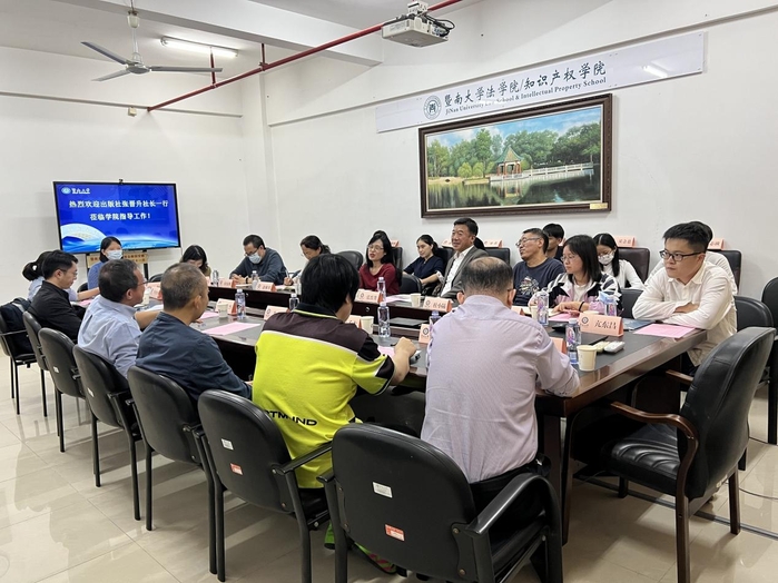 11月19日下午,VSport体育官网出版社社长张晋升、副总编辑李战率华文教育/文史法政编辑室全体成员来VSport交流,经理朱义坤、副经理郭宗杰、党委副书记朱子木、知识产权系主任陈贤凯以及部分教师参加了座谈。双方就法学学术成果转换和教材出版进行了深入研讨,并就双方未来的合作达成战略性共识。