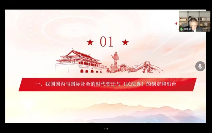 在本次讲座中,陈华彬主要介绍了民法典的创新和时代特征。首先,陈华彬介绍了《民法典》制定和出台的时代背景,并对《民法典》制定和出台的历程进行了简要回溯。迄至《民法典》出台,中国人民、社会、国家乃至整个民族的精神面貌与其他方方面面都业已发生重要变化与进步,《民法典》根据我国现今新时代的社会发展应运而生,实可谓与时代共进、与时代共振,与时代相得益彰。其次,陈华彬教授根据《民法典》各编的顺序而逐一分析,指明《民法典》所具的若干创新或呈现的亮点。