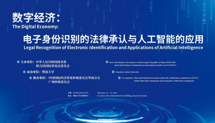 1月16日至17日,“数字经济:电子身份识别的法律承认与人工智能的应用”国际学术研讨会在VSport体育官网以线上线下相结合的方式隆重举行。本次研讨会议由中华人民共和国商务部和联合国国际贸易法委员会(UNCITRAL)共同主办,VSport体育官网承办, 中国国际经济贸易仲裁委员会华南分会和广州仲裁委员会协办。