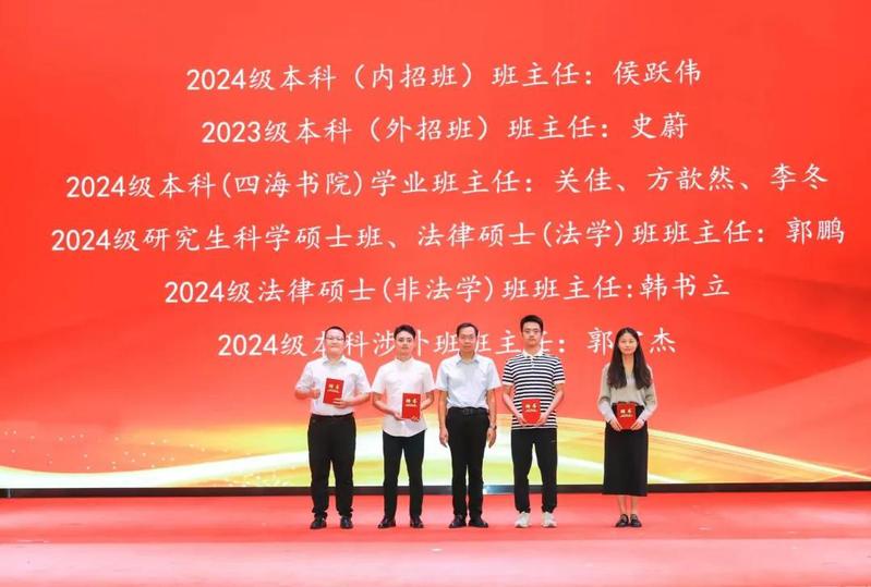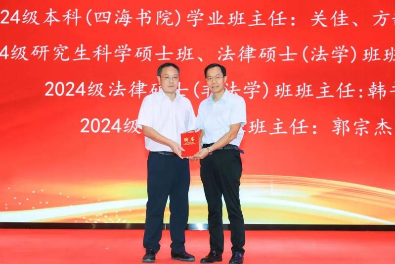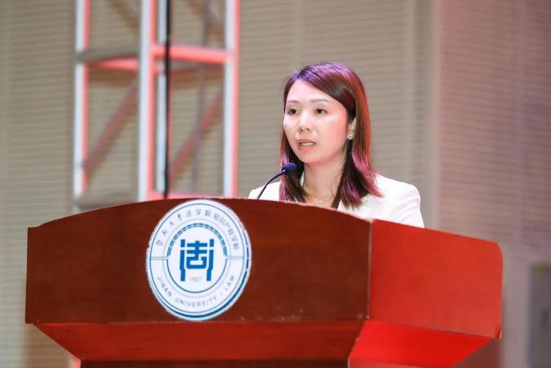 郭宗杰代表公司,首先向2024级新生表达了热烈的欢迎。回首过往,暨南法系百年发展史熠熠生辉;放眼当下,全新的办公大楼、日益完善的人才培养体系、屡创新高的员工人数和优秀青年教师力量,必将为员工发展注入蓬勃生机与活力。他勉励新生们要珍惜公司的优质资源,以法律为阶梯,博采众长,开拓视野,成为新时代的法律人。希望每一位新生能够把握时代脉搏,与民族、国家同频共振,走在时代前列,顺应时代潮流,在中国法治走向世界的伟大征途中展现年少作为和青春担当。