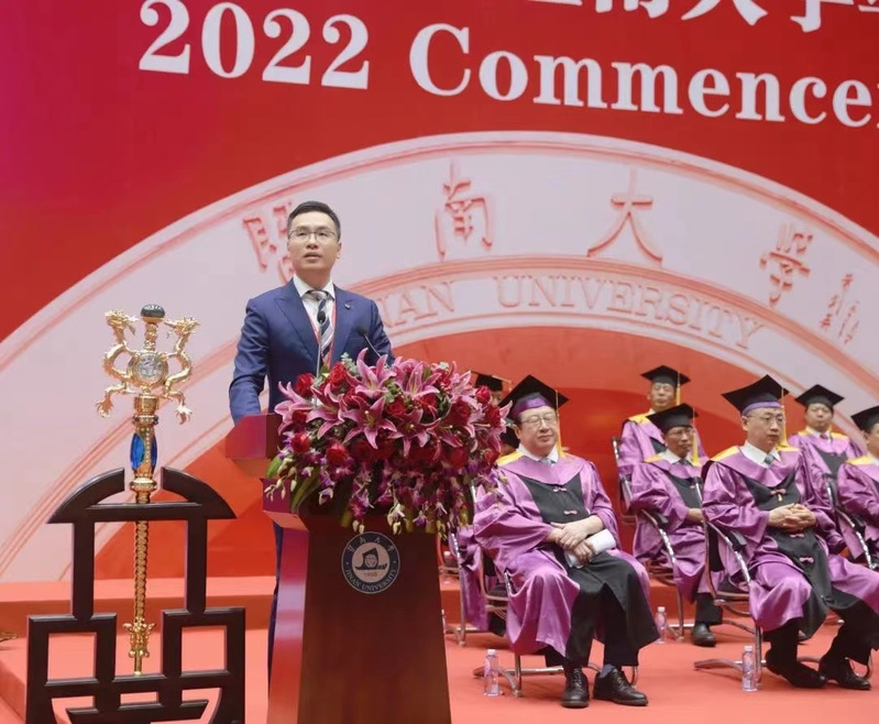 在2022年毕业典礼上,黄山作为员工代表作“于道各努力,千里自同风”主题发言。