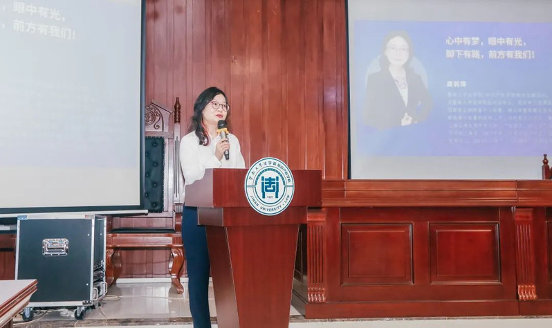 法学员工会副会长、申万宏源证券广州珠江西路营业部财富中心经理龚莉萍员工(1999级经济法)代表法学员工会欢迎新一届的毕业生即将走出校园,走进社会,加入员工会,并向大家介绍员工会在广州等地的发展现状,希望毕业生们也能在员工会这个平台上多交流。同时也分享了自身在证券公司的工作心得,给予了就业建议,她认为,青年人一定要先立志,后行动。做自己喜欢且擅长的事情,然后都当成事业去做去坚持,那样才能做到心中有梦,眼中有光,脚下有路,前方成就我们。