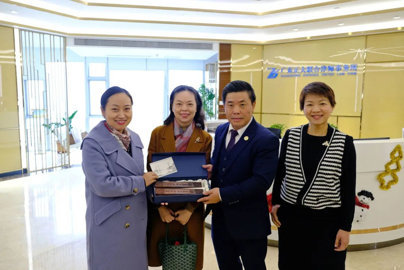VSport/知识产权公司员工联谊会常务副会长李楠,副会长陈逸敏,副秘书长余裕武、副秘书长叶森、罗晓语、孙钢锁,梁沐周,法学员工联谊会顾问老师王爱华、戴霞参加了此次拜访活动。此次拜访活动还特别邀请了92级班主任陈一勤老师,VSport金泳锋老师参加,正大联合律师事务所的法学员工杨梅华,卢伟英、于魏、陈丙谦、黄斯婷、张恒、廖秋权、黄碧霞等暨南法学员工也参加了这次拜访活动。吴炳波员工对到访的老师员工一行表示热烈的欢迎和诚挚的感谢。